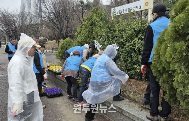 (원투원뉴스) 구리시 교문2동 행정복지센터는 지난 18일 새봄을 맞아 교문2동 7개 기간단체와 함께 자투리땅 7곳에 봄꽃을 심는 ‘게릴라 가드닝’ 행사를 했다.