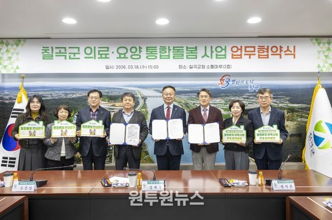 (원투원뉴스) 칠곡군은 18일 군청에서 칠곡군립노인요양병원, 왜관병원과 함께 ‘퇴원환자 지역사회 연계사업’ 추진을 위한 업무협약(MOU)을 체결했다.