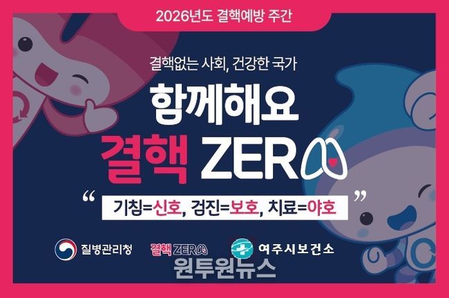 (원투원뉴스) 여주시 보건행정과는 오는 3월 24일 ‘제16회 결핵 예방의 날’을 맞아 결핵에 대한 경각심을 높이고 조기 검진의 중요성을 알리기 위해 3월 23일부터 27일까지 일주일간 결핵예방주간을 운영한다고 밝혔다.