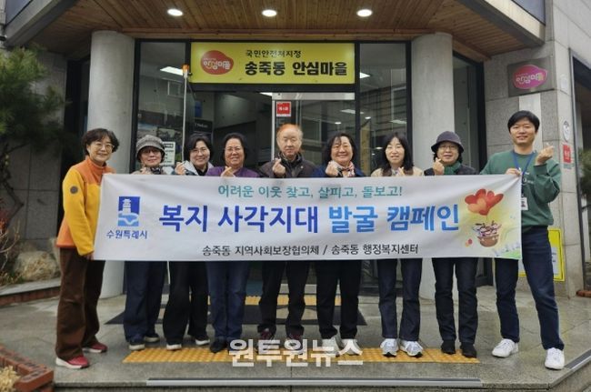 (원투원뉴스) 수원시 장안구 송죽동은 지난 18일, 송죽동 행정복지센터 일대와 만석공원 주변에서 ‘복지사각지대 발굴 캠페인’을 실시했다.