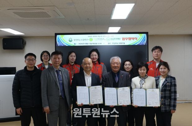 (원투원뉴스) 사회복지법인 한길복지재단은 3월 17일 한길학교 시청각실에서 정성영농조합법인, 농업회사법인 정선아라리(유)와 함께 사회적 약자의 자립 지원 및 일자리 창출을 위한 업무협약을 체결했다.