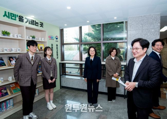 (원투원뉴스) 김포시가 지난 18일, 마송고등학교를 방문해 ‘자율형 공립고 2.0’ 운영 현황을 확인하고, 달라진 공교육 현장과 학생들의 교육 환경을 직접 살폈다.