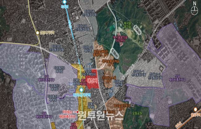 (원투원뉴스) 지하철 4호선 미아사거리역 롯데백화점 뒤 300m 역세권에 최고 높이 45층, 1,600세대 대규모 아파트 단지가 들어선다.