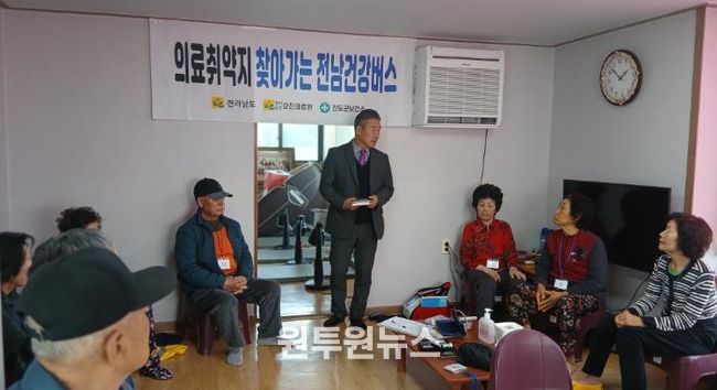 (원투원뉴스) 진도군은 의료기관에 대한 접근성이 낮은 농어촌 지역 주민들의 건강관리를 위해 순회진료 사업의 하나로 ‘찾아가는 전남건강버스’를 통해 맞춤형 의료서비스를 추진했다.