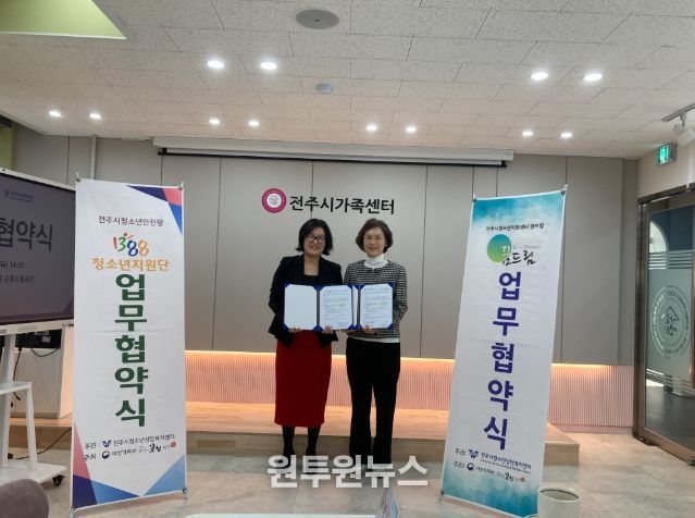 (원투원뉴스) 전주시청소년상담복지센터(센터장 정혜선)는 19일 지역 내 청소년 및 가족의 건강한 성장과 복지 증진을 위해 전주시가족센터(센터장 이해경)와 업무협약을 체결했다.