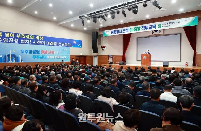 (원투원뉴스) 사천시는 19일 사천시청 대강당에서 지역의 최일선에서 활동하는 이·통장의 역할과 직무역량 강화를 위해 관내 이·통장 403명을 대상으로 직무교육을 실시했다.