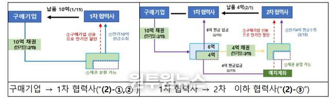 상생결제는 대기업 등 구매기업이 1차 협력사에 지급한 납품대금이 2차 이하 협력사로 안전하게 지급되도록 하는 결제방식으로, 협력사는 결제일에 현금지급을 보장받고, 구매기업의 높은 신용도를 활용해 낮은 금리로 조기 현금화가 가능한 장점도 있다.