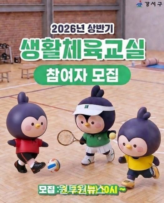 (원투원뉴스) 서울 강서구는 구민의 건강한 일상을 지원하기 위해 오는 3월 23일부터 3월 27일까지 2026년 상반기 생활체육교실 참가자를 모집한다고 밝혔다.