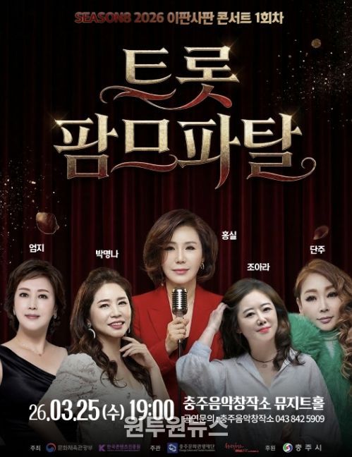 (원투원뉴스) 충주음악창작소는 오는 3월 25일 오후 7시 창작소 뮤지트홀에서 2026 음악창작소 프로그램 운영지원 사업 ‘이판사판 콘서트 시즌8’ 1회차 공연 ‘트롯 팜므파탈’을 선보인다.