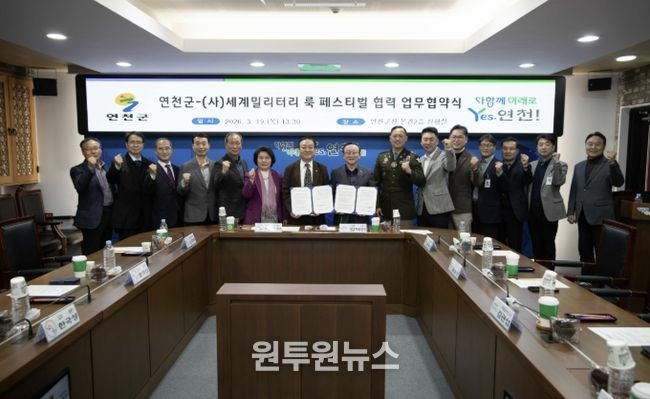 (원투원뉴스) 연천군은 지난 19일 군청 본관 2층 상황실에서 사단법인 세계밀리터리 룩 페스티벌과 군 문화 협력 강화를 위한 업무협약(MOU)을 체결했다.