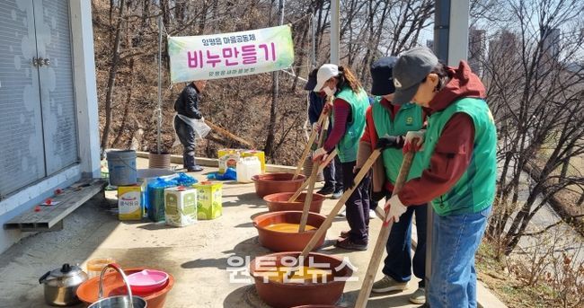 (원투원뉴스) 양평군 양평읍새마을회는 19일 양평읍 갈산공원 내 새마을회 사무실에서 회원 20여 명이 참여한 가운데 친환경 비누 만들기 봉사활동을 진행했다.