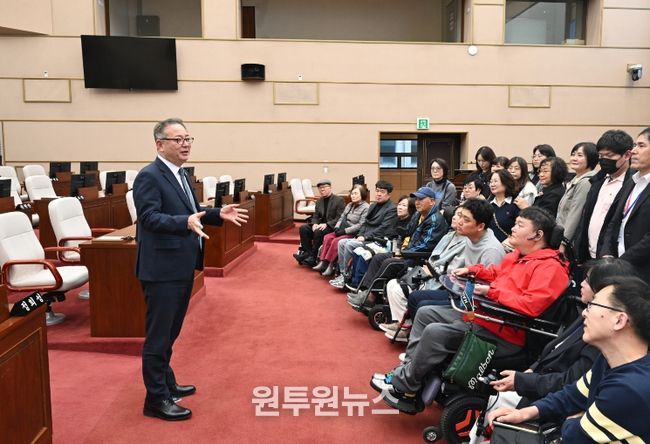 이날 본회의장 방청석은 평소와 달리 휠체어를 탄 중도장애인 당사자와 경남척수장애인협회 관계자 등 50여 명이 참석해 조례안이 통과되는 과정을 직접 확인했다.