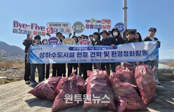 (원투원뉴스) 김해시 상하수도사업소는 세계 물의 날(3.22)을 맞아 20일 전입 1년 이내 직원 20여 명이 참여한 가운데 상하수도시설 견학을 실시했다.