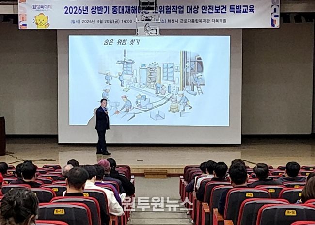 (원투원뉴스) 화성특례시가 20일 고위험작업 담당자와 용역·위탁 사업장 근로자를 대상으로 ‘2026년 상반기 중대산업재해 예방 안전보건 특별교육’을 실시했다.