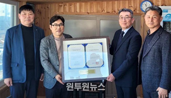 (원투원뉴스) 강원특별자치도는 3월 19일 고성군에 구 간성기선점 반석에 대한 ‘국가등록문화유산 등록증’을 전달했다.