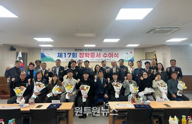 (원투원뉴스) (재)논공효천장학회는 지난 20일 논공읍 행정복지센터에서 장학회 임원과 장학생, 학부모 등 50여 명이 참석한 가운데 ‘제17회 장학증서 수여식’을 개최했다고 밝혔다.