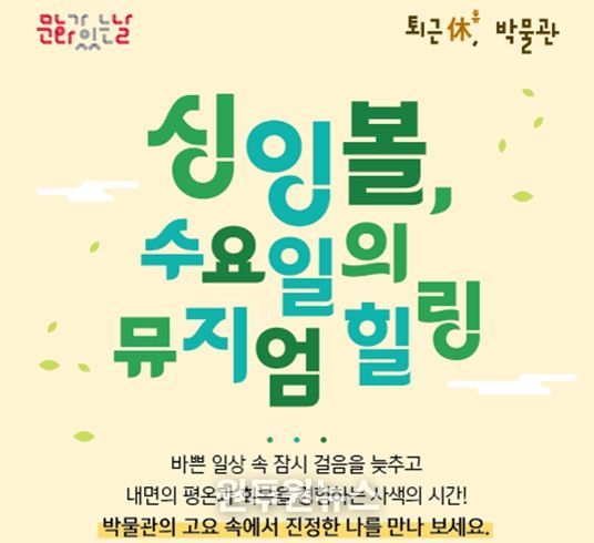 ‘퇴근 휴(休), 박물관’은 문화가 있는 날 확대 시행에 맞춰 직장인 등 성인들이 퇴근 이후 부담 없이 참여할 수 있는 체험 프로그램을 제공해 일상 속 문화 향유 기회를 넓히기 위해 마련됐다.