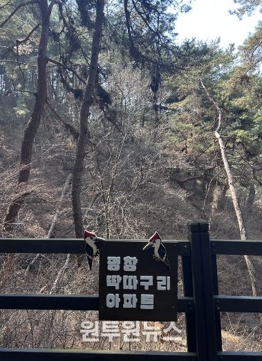 (원투원뉴스) 평창의 자연 속 힐링 명소인 평창치유의숲에서 이색적인 자연 볼거리 ‘딱따구리 아파트’가 방문객들의 눈길을 사로잡으며 화제를 모으고 있다.