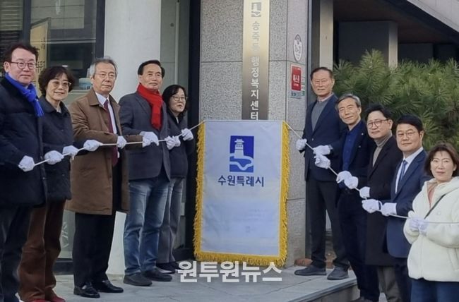 (원투원뉴스) 수원시 장안구 송죽동은 지난 19일, 송죽동 행정복지센터 입구에서 주민 중심의 마을 교육 네트워크인 '2026년 동 평생학습센터'의 공식 출범을 알리는 현판 제막식을 개최했다.