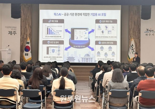 (원투원뉴스) 제주시는 공직자의 인공지능(AI) 활용 역량을 높여 스마트 행정을 실현하기 위해 전 직원을 대상으로 생성형 AI 기반 업무 지원 도구인 ‘웍스AI’ 교육을 20일 실시했다.