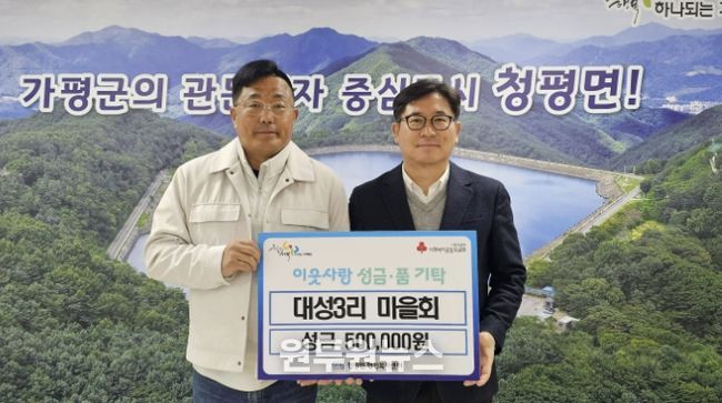 이번 성금은 지역 내 어려운 이웃을 돕기 위해 대성3리 주민들이 뜻을 모아 마련한 것으로, 청평면 내 취약계층 지원에 사용될 예정이다.