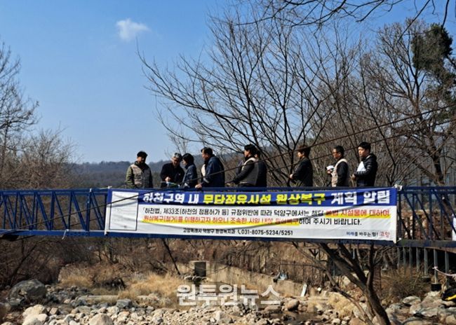 (원투원뉴스) 고양특례시는 하천·계곡의 공공 기능을 회복하고 여름철 집중호우로 인한 재해와 인명피해를 예방하기 위한 불법점용시설 합동점검을 지난 20일 실시했다.