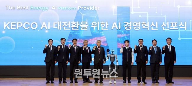 이날 선포식에는 김동철 사장을 비롯한 경영진과 기후에너지환경부, 한국지능정보사회진흥원(NIA) 등 유관기관 관계자들이 참석했다. 특히, 김동철 사장이 휴머노이드 로봇과 함께 입장하는 퍼포먼스를 선보이며, AI가 주도할 전력산업의 미래를 상징적으로 제시했다.