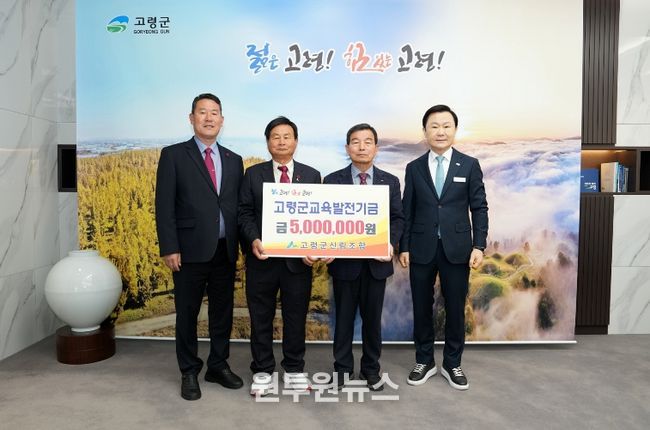 (원투원뉴스) 3월 23일 고령군산림조합(산림조합장 임대성)에서 고령군청을 방문하여 지역의 교육 발전과 인재 양성을 위해 사용해 달라며 교육발전기금 500만원을 기탁했다.