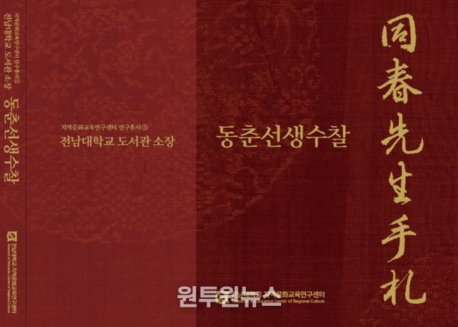 24일 전남대학교에 따르면, 사범대학 부설 지역문화교육연구센터(센터장 노철 교수·국어교육과)는 지난 2월 본교 도서관 고문헌자료실 소장 [동춘선생수찰]국역해 출간했다.