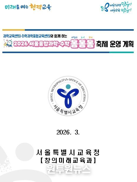 (원투원뉴스) 서울특별시교육청은 4월 과학의 달을 맞이하여 ‘체험해 봄, 놀아 봄, 꿈꿔 봄’의 의미를 담은 '2026 서울융합과학·수학 봄봄봄 축제'를 운영한다.