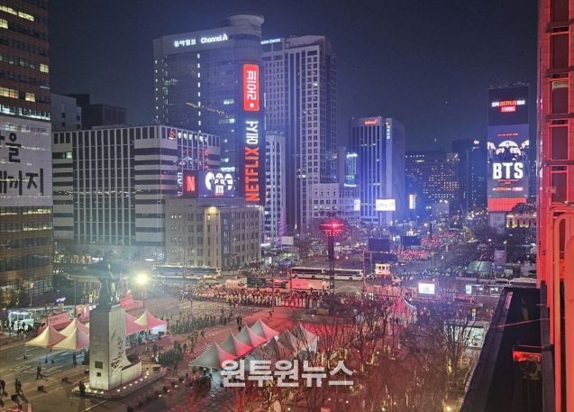 (원투원뉴스) 종로구는 3월 21일 광화문스퀘어 옥외광고물 자유표시구역에서 열린 BTS 컴백 공연을 계기로, 광화문 일대를 빛과 미디어가 결합한 초대형 무대로 구현했다.