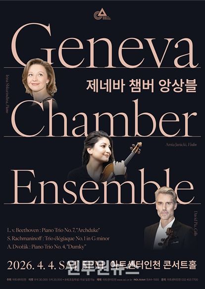 (원투원뉴스) 아트센터인천은 세계적인 국제 음악 콩쿠르 수상자들로 구성된 스위스 대표 실내악 단체인 '제네바 챔버 앙상블'의 내한 공연을 오는 4월 4일 오후 5시 아트센터인천 콘서트홀에서 선보인다. 이번 공연은 세계 무대에서 검증된 솔리스트 3인이 빚어내는 정교하면서도 밀도 높은 사운드를 통해 실내악의 진정한 매력을 경험할 수 있는 기회가 될 것이다.
