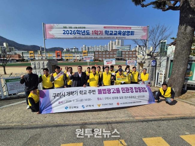 (원투원뉴스) 구미시는 개학기를 맞아 (사)경북옥외광고협회 구미시지부(지부장 정원표)와 함께 초등학교 주변 불법광고물에 대한 일제 정비에 나섰다. 학생들의 안전한 통학환경을 확보하고 도시 경관을 개선하기 위한 조치다.
