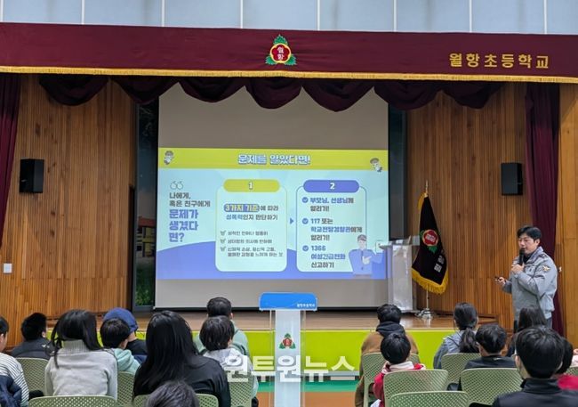 이번 교육은 월항초등학교를 시작으로 관내 13개 학교를 순차적으로 방문하여 진행될 예정이며, 학교폭력 문제를 사전에 예방하고 학생들이 건강한 또래 관계를 형성할 수 있도록 돕고, 학교폭력 상황 발생 시 올바른 대처방법과 신고 절차 안내에 중점을 두고 있다.