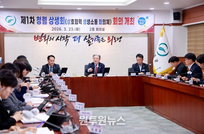 (원투원뉴스) 의령군은 23일 군청 2층 회의실에서 군수 주재로 부군수, 국·소장, 부서장 등이 참석한 가운데 간부 공무원 중심 청렴 회의체인 제1차 ‘청렴 상생회’를 열고 2026년 청렴시책 추진 방향과 부패 취약분야 개선방안을 논의했다.