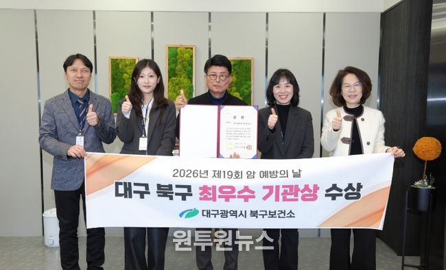 (원투원뉴스) 대구 북구보건소는 지난 3월 20일 칠곡경북대학교병원에서 열린 '제19회 암 예방의 날 기념식'에서 국가암검진사업 최우수기관으로 선정돼 대구광역시장 표창을 받았다.