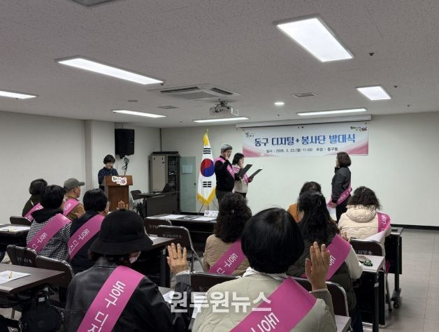 이날 발대식에는 동구동 관계자와 봉사단원 등이 참석해 디지털 사회에서의 포용과 상생 협력의 의미를 되새겼다. ‘동구 디지털+ 봉사단’은 앞으로 모바일 주민등록증 발급 지원, 무인민원발급기 이용 안내 등 주민 생활과 밀접한 다양한 디지털 지원 활동을 펼칠 예정이다.