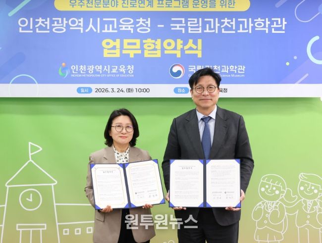 (원투원뉴스) 인천광역시교육청은 24일 국립과천과학관과 우주천문 분야 진로연계 프로그램 운영을 위한 업무협약을 체결하고 미래 우주 시대를 이끌어갈 창의적인 인재 양성에 나섰다.