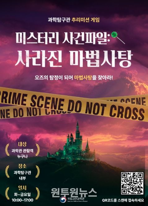 (원투원뉴스) 과학기술정보통신부 국립과천과학관은 관람객이 즐길 수 있는 디지털 추리 임무(미션) 프로그램 『수수께끼(미스터리) 사건 파일: 사라진 마법 사탕』을 3월 31일부터 과학탐구관에서 선보인다고 밝혔다.