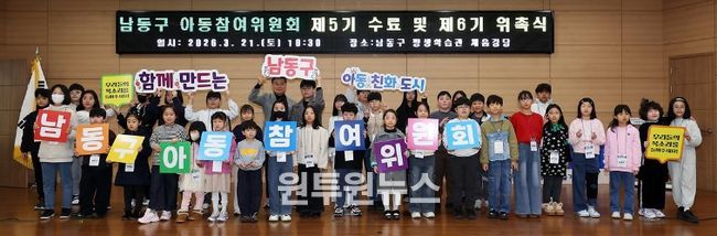 (원투원뉴스) 인천시 남동구는 최근 남동구 평생학습관 강당에서 ‘남동구 아동참여위원회 제5기 수료 및 제6기 위촉식’을 개최했다고 24일 밝혔다.