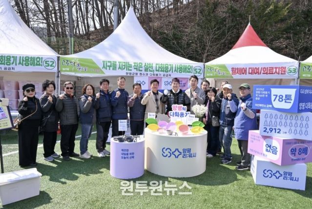 (원투원뉴스) 양평군은 지난 21일부터 22일까지 이틀간 열린 제27회 양평단월고로쇠축제에서 군이 자체 제작한 다회용기 12만 개를 사용해 약 5.6톤의 탄소를 감축했다고 밝혔다. 이는 소나무 약 45그루가 60년간 흡수하는 이산화탄소량에 해당하는 수준이다