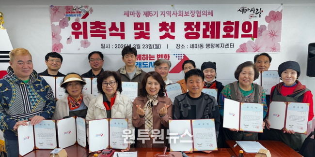 (원투원뉴스) 오산시 세마동 행정복지센터는 지역복지 증진과 민관 협력 강화를 위한 ‘세마동 제6기 지역사회보장협의체’를 구성하고, 위촉장 수여식과 함께 첫 정례회의를 개최했다고 밝혔다.