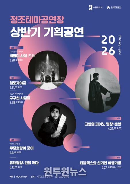 (원투원뉴스) 수원문화재단은 오는 4월부터 6월까지 정조테마공연장에서 전통예술의 현대적 확장을 주제로 한 기획공연 4편을 선보인다.