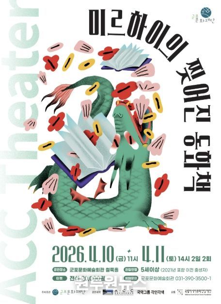 (원투원뉴스) 군포문화재단은 어린이와 가족이 함께 관람할 수 있는 공연 '미르하이의 찢어진 동화책'을 4월 10일~11일 군포문화예술회관 철쭉홀에서 개최한다고 밝혔다. 이번 공연은 2026 국립아시아문화전당재단 어린이 공연 유통 공모사업의 일환으로, 국립아시아문화전당(ACC) 창·제작 어린이 공연을 지역에 소개하기 위해 마련됐다.