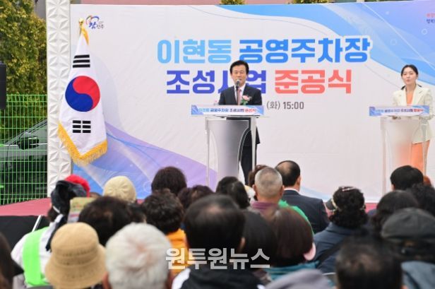 (원투원뉴스) 진주시는 24일 오후 이현동 행정복지센터 인근에 조성한 ‘이현동 공영주차장’ 준공식을 가졌다고 밝혔다.