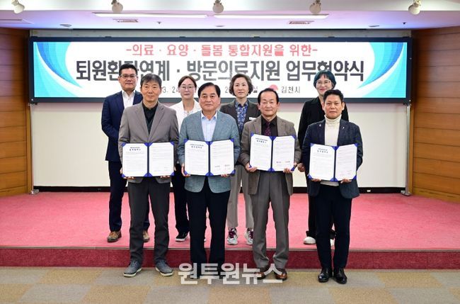 (원투원뉴스) 김천시는 3월 24일 김천시청 2층 회의실에서 지역의료기관과 ‘퇴원환자 지역사회 연계 및 방문의료지원 사업’ 업무협약을 체결했다.