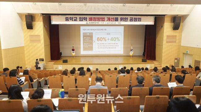 이번 공청회는 이달 초 마련된 중학교 입학 배정 개선안을 설명하고, 교육공동체의 다양한 의견을 듣고자 마련됐다. 현장에는 학부모와 교직원 150여 명이 참석해 높은 관심을 보였다.