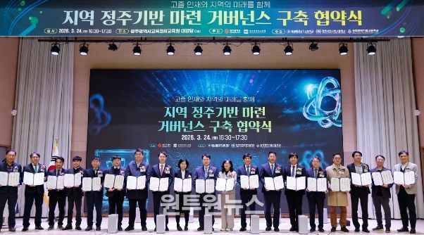 (원투원뉴스) 광주시교육청과 광주시는 24일 광주AI교육원 대강당에서 이정선 광주시교육감, 김기숙 광주시 교육청년국장 등이 참석한 가운데 ‘고졸 인재와 지역의 미래를 함께, 지역 정주기반 마련 거버넌스 구축 협약식’을 개최했다.