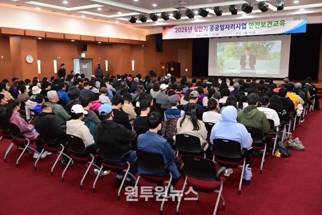 (원투원뉴스) 진주시는 2026년 상반기 공공일자리사업 참여자의 안전한 근무환경 조성과 사고 예방을 위해 24일 시청 시민홀에서 안전보건교육을 실시했다.
