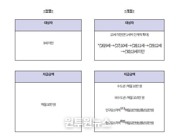 (원투원뉴스) 보건복지부는 3월 24일 지역별 아동수당 추가금액을 구체화하는'아동수당법 시행령 일부개정령안'이 국무회의에서 의결됐다고 밝혔다.